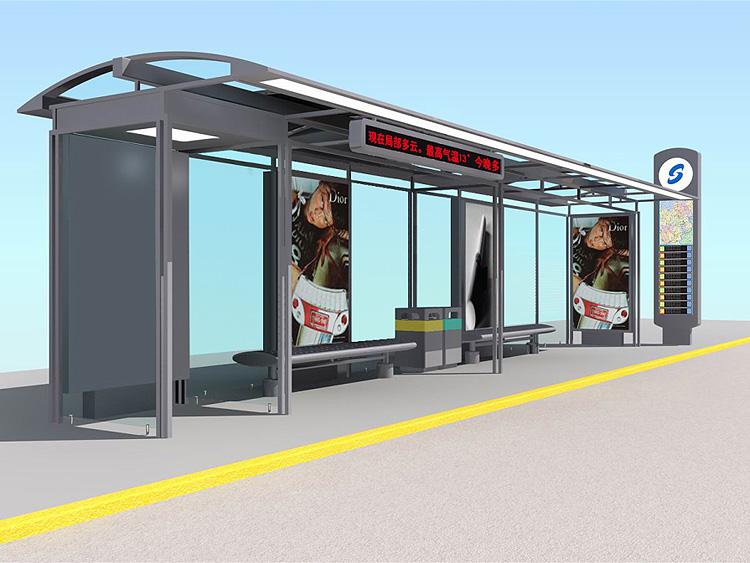 公交車候車亭一般是與公交站牌相配套的,為方便公交乘客候車時(shí)遮陽、防雨等,在車站、道路兩旁或綠化帶的港灣式公交?空旧辖ㄔO(shè)的交通設(shè)施。由于城市公交的日益發(fā)達(dá),候車亭已發(fā)展成為城市一個(gè)不可或缺的重要組成部分,設(shè)計(jì)精美的候車亭也成為了城市一道美麗的風(fēng)景。一般候車亭棚體主要頂棚、立柱、頂弓、廣告燈箱和坐凳組成,也有用隔板來代替廣告燈箱的。