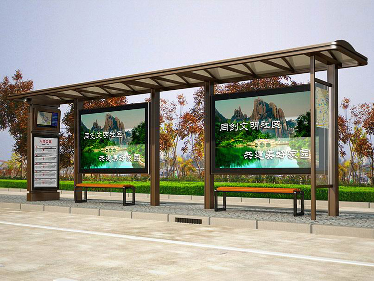 公交車候車亭一般是與公交站牌相配套的,為方便公交乘客候車時(shí)遮陽(yáng)、防雨等,在車站、道路兩旁或綠化帶的港灣式公交?空旧辖ㄔO(shè)的交通設(shè)施。由于城市公交的日益發(fā)達(dá),候車亭已發(fā)展成為城市一個(gè)不可或缺的重要組成部分,設(shè)計(jì)精美的候車亭也成為了城市一道美麗的風(fēng)景。一般候車亭棚體主要頂棚、立柱、頂弓、廣告燈箱和坐凳組成,也有用隔板來(lái)代替廣告燈箱的。