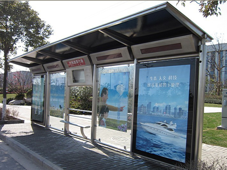 公交車候車亭一般是與公交站牌相配套的,為方便公交乘客候車時遮陽、防雨等,在車站、道路兩旁或綠化帶的港灣式公交?空旧辖ㄔO(shè)的交通設(shè)施。由于城市公交的日益發(fā)達(dá),候車亭已發(fā)展成為城市一個不可或缺的重要組成部分,設(shè)計精美的候車亭也成為了城市一道美麗的風(fēng)景。 一般候車亭棚體主要頂棚、立柱、頂弓、廣告燈箱和坐凳組成,也有用隔板來代替廣告燈箱的。