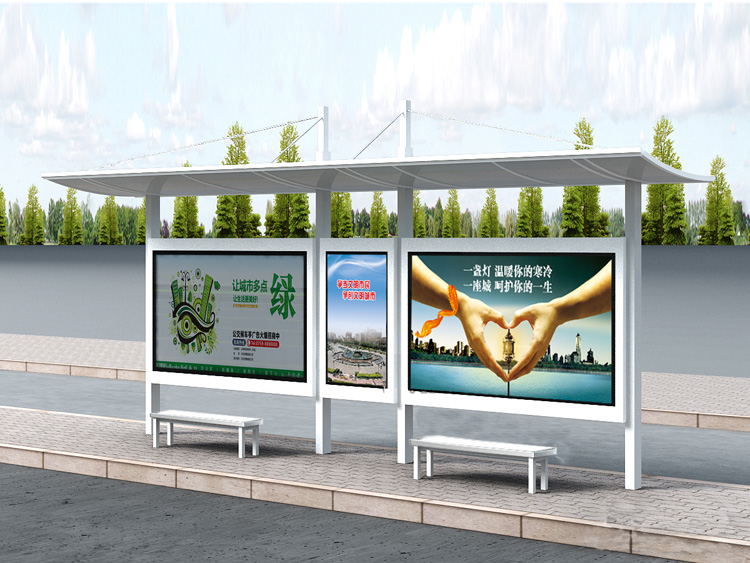 公交車(chē)候車(chē)亭一般是與公交站牌相配套的,為方便公交乘客候車(chē)時(shí)遮陽(yáng)、防雨等,在車(chē)站、道路兩旁或綠化帶的港灣式公交?空旧辖ㄔO(shè)的交通設(shè)施。由于城市公交的日益發(fā)達(dá),候車(chē)亭已發(fā)展成為城市一個(gè)不可或缺的重要組成部分,設(shè)計(jì)精美的候車(chē)亭也成為了城市一道美麗的風(fēng)景。 一般候車(chē)亭棚體主要頂棚、立柱、頂弓、廣告燈箱和坐凳組成,也有用隔板來(lái)代替廣告燈箱的。