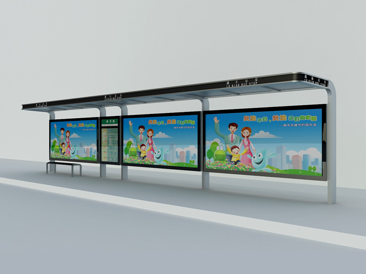 公交車候車亭一般是與公交站牌相配套的,為方便公交乘客候車時遮陽、防雨等,在車站、道路兩旁或綠化帶的港灣式公交?空旧辖ㄔO的交通設施。由于城市公交的日益發(fā)達,候車亭已發(fā)展成為城市一個不可或缺的重要組成部分,設計精美的候車亭也成為了城市一道美麗的風景。 一般候車亭棚體主要頂棚、立柱、頂弓、廣告燈箱和坐凳組成,也有用隔板來代替廣告燈箱的。