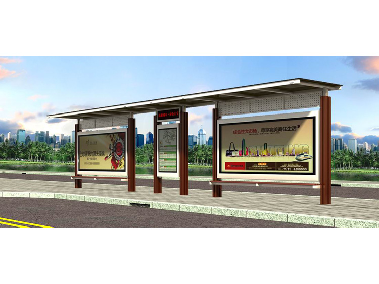 公交車候車亭一般是與公交站牌相配套的,為方便公交乘客候車時遮陽、防雨等,在車站、道路兩旁或綠化帶的港灣式公交?空旧辖ㄔO(shè)的交通設(shè)施。由于城市公交的日益發(fā)達,候車亭已發(fā)展成為城市一個不可或缺的重要組成部分,設(shè)計精美的候車亭也成為了城市一道美麗的風(fēng)景。 一般候車亭棚體主要頂棚、立柱、頂弓、廣告燈箱和坐凳組成,也有用隔板來代替廣告燈箱的。