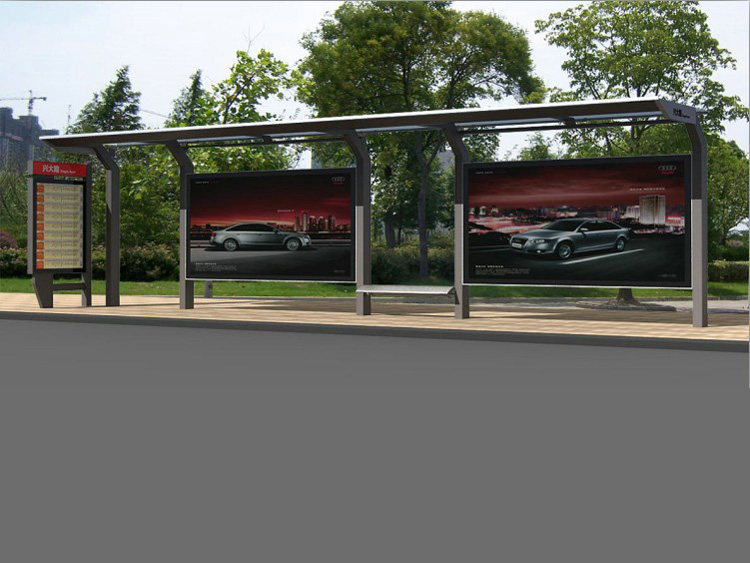 公交車候車亭一般是與公交站牌相配套的,為方便公交乘客候車時遮陽、防雨等,在車站、道路兩旁或綠化帶的港灣式公交?空旧辖ㄔO(shè)的交通設(shè)施。由于城市公交的日益發(fā)達,候車亭已發(fā)展成為城市一個不可或缺的重要組成部分,設(shè)計精美的候車亭也成為了城市一道美麗的風景。 一般候車亭棚體主要頂棚、立柱、頂弓、廣告燈箱和坐凳組成,也有用隔板來代替廣告燈箱的。