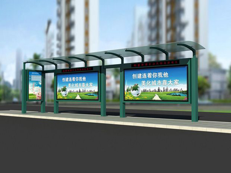 公交車候車亭一般是與公交站牌相配套的,為方便公交乘客候車時(shí)遮陽、防雨等,在車站、道路兩旁或綠化帶的港灣式公交停靠站上建設(shè)的交通設(shè)施。由于城市公交的日益發(fā)達(dá),候車亭已發(fā)展成為城市一個(gè)不可或缺的重要組成部分,設(shè)計(jì)精美的候車亭也成為了城市一道美麗的風(fēng)景。 一般候車亭棚體主要頂棚、立柱、頂弓、廣告燈箱和坐凳組成,也有用隔板來代替廣告燈箱的。