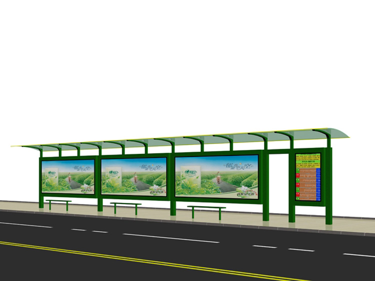 公交車(chē)候車(chē)亭一般是與公交站牌相配套的,為方便公交乘客候車(chē)時(shí)遮陽(yáng)、防雨等,在車(chē)站、道路兩旁或綠化帶的港灣式公交?空旧辖ㄔO(shè)的交通設(shè)施。由于城市公交的日益發(fā)達(dá),候車(chē)亭已發(fā)展成為城市一個(gè)不可或缺的重要組成部分,設(shè)計(jì)精美的候車(chē)亭也成為了城市一道美麗的風(fēng)景。 一般候車(chē)亭棚體主要頂棚、立柱、頂弓、廣告燈箱和坐凳組成,也有用隔板來(lái)代替廣告燈箱的。