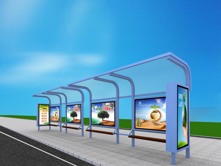 公交車候車亭一般是與公交站牌相配套的,為方便公交乘客候車時(shí)遮陽(yáng)、防雨等,在車站、道路兩旁或綠化帶的港灣式公交停靠站上建設(shè)的交通設(shè)施。由于城市公交的日益發(fā)達(dá),候車亭已發(fā)展成為城市一個(gè)不可或缺的重要組成部分,設(shè)計(jì)精美的候車亭也成為了城市一道美麗的風(fēng)景。 一般候車亭棚體主要頂棚、立柱、頂弓、廣告燈箱和坐凳組成,也有用隔板來(lái)代替廣告燈箱的。