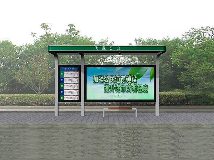 公交車候車亭一般是與公交站牌相配套的,為方便公交乘客候車時遮陽、防雨等,在車站、道路兩旁或綠化帶的港灣式公交停靠站上建設(shè)的交通設(shè)施。由于城市公交的日益發(fā)達(dá),候車亭已發(fā)展成為城市一個不可或缺的重要組成部分,設(shè)計精美的候車亭也成為了城市一道美麗的風(fēng)景。 一般候車亭棚體主要頂棚、立柱、頂弓、廣告燈箱和坐凳組成,也有用隔板來代替廣告燈箱的。