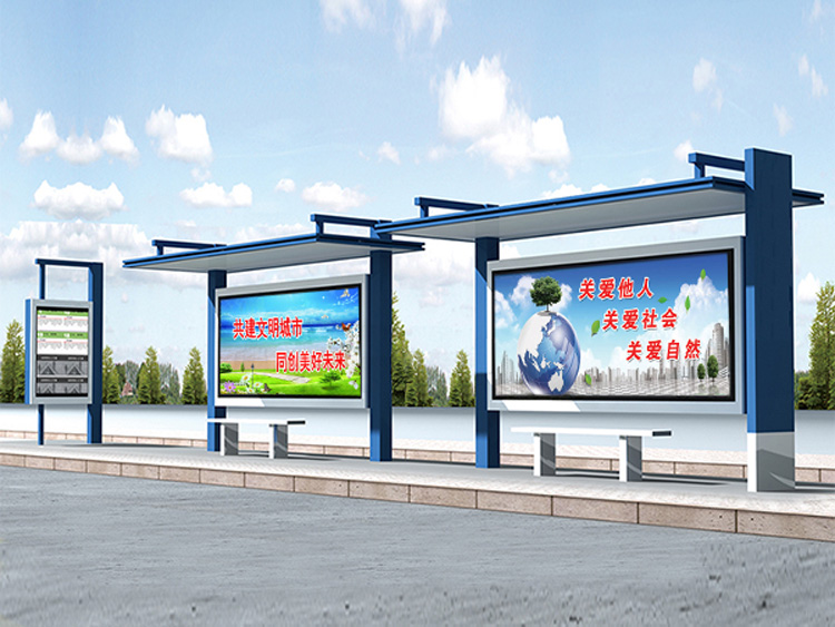 公交車候車亭一般是與公交站牌相配套的,為方便公交乘客候車時遮陽、防雨等,在車站、道路兩旁或綠化帶的港灣式公交停靠站上建設(shè)的交通設(shè)施。由于城市公交的日益發(fā)達,候車亭已發(fā)展成為城市一個不可或缺的重要組成部分,設(shè)計精美的候車亭也成為了城市一道美麗的風景。 一般候車亭棚體主要頂棚、立柱、頂弓、廣告燈箱和坐凳組成,也有用隔板來代替廣告燈箱的。
