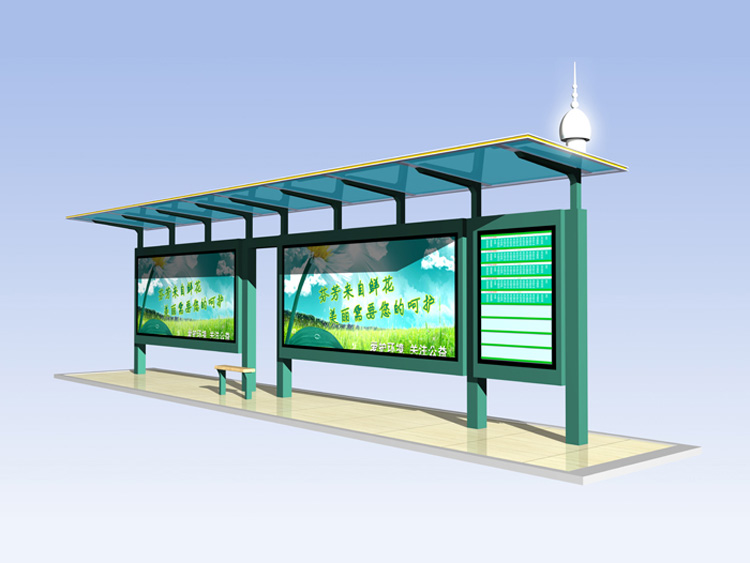 公交車候車亭一般是與公交站牌相配套的,為方便公交乘客候車時遮陽、防雨等,在車站、道路兩旁或綠化帶的港灣式公交?空旧辖ㄔO(shè)的交通設(shè)施。由于城市公交的日益發(fā)達,候車亭已發(fā)展成為城市一個不可或缺的重要組成部分,設(shè)計精美的候車亭也成為了城市一道美麗的風(fēng)景。 一般候車亭棚體主要頂棚、立柱、頂弓、廣告燈箱和坐凳組成,也有用隔板來代替廣告燈箱的。