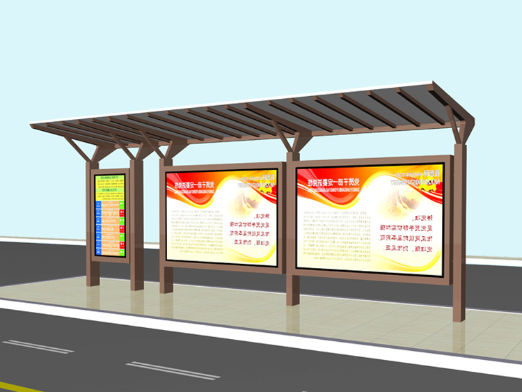公交車(chē)候車(chē)亭一般是與公交站牌相配套的,為方便公交乘客候車(chē)時(shí)遮陽(yáng)、防雨等,在車(chē)站、道路兩旁或綠化帶的港灣式公交?空旧辖ㄔO(shè)的交通設(shè)施。由于城市公交的日益發(fā)達(dá),候車(chē)亭已發(fā)展成為城市一個(gè)不可或缺的重要組成部分,設(shè)計(jì)精美的候車(chē)亭也成為了城市一道美麗的風(fēng)景。 一般候車(chē)亭棚體主要頂棚、立柱、頂弓、廣告燈箱和坐凳組成,也有用隔板來(lái)代替廣告燈箱的。