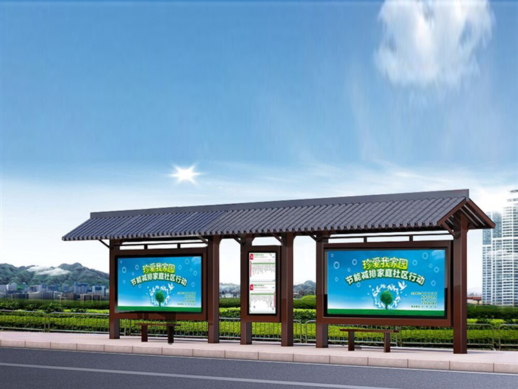公交車(chē)候車(chē)亭一般是與公交站牌相配套的,為方便公交乘客候車(chē)時(shí)遮陽(yáng)、防雨等,在車(chē)站、道路兩旁或綠化帶的港灣式公交?空旧辖ㄔO(shè)的交通設(shè)施。由于城市公交的日益發(fā)達(dá),候車(chē)亭已發(fā)展成為城市一個(gè)不可或缺的重要組成部分,設(shè)計(jì)精美的候車(chē)亭也成為了城市一道美麗的風(fēng)景。 一般候車(chē)亭棚體主要頂棚、立柱、頂弓、廣告燈箱和坐凳組成,也有用隔板來(lái)代替廣告燈箱的。