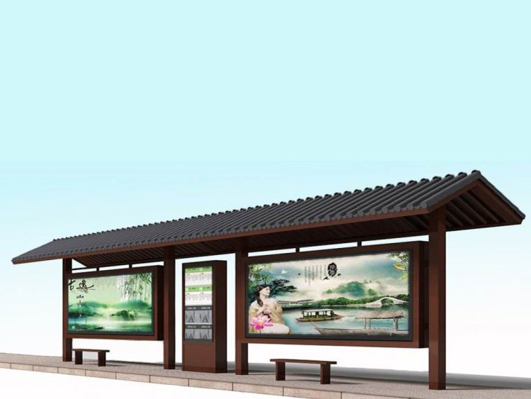 公交車候車亭一般是與公交站牌相配套的,為方便公交乘客候車時遮陽、防雨等,在車站、道路兩旁或綠化帶的港灣式公交?空旧辖ㄔO(shè)的交通設(shè)施。由于城市公交的日益發(fā)達,候車亭已發(fā)展成為城市一個不可或缺的重要組成部分,設(shè)計精美的候車亭也成為了城市一道美麗的風(fēng)景。 一般候車亭棚體主要頂棚、立柱、頂弓、廣告燈箱和坐凳組成,也有用隔板來代替廣告燈箱的。
