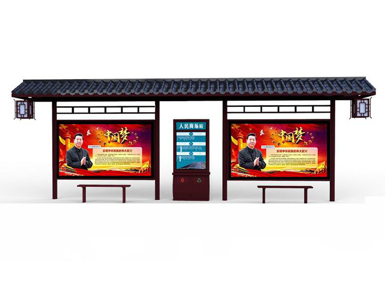 公交車候車亭一般是與公交站牌相配套的,為方便公交乘客候車時遮陽、防雨等,在車站、道路兩旁或綠化帶的港灣式公交?空旧辖ㄔO的交通設施。由于城市公交的日益發(fā)達,候車亭已發(fā)展成為城市一個不可或缺的重要組成部分,設計精美的候車亭也成為了城市一道美麗的風景。 一般候車亭棚體主要頂棚、立柱、頂弓、廣告燈箱和坐凳組成,也有用隔板來代替廣告燈箱的。