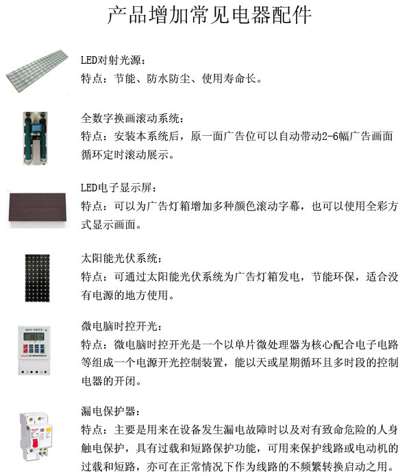 我公司專業(yè)生產(chǎn)公交站臺(tái)、候車亭、不銹鋼公交候車亭、鋁合金公交候車亭、仿古候車亭、公共自行車棚、公共自行車亭、自行車服務(wù)亭、出租車的士亭、公交電子站牌、宣傳欄燈箱、閱報(bào)欄燈箱、崗?fù)、指路牌、路名牌燈箱、LED滾動(dòng)燈箱、廣告垃圾箱、戶外大型廣告燈箱等幾十種廣告設(shè)備。