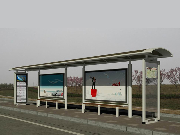 公交車候車亭一般是與公交站牌相配套的,為方便公交乘客候車時遮陽、防雨等,在車站、道路兩旁或綠化帶的港灣式公交停靠站上建設的交通設施。由于城市公交的日益發達,候車亭已發展成為城市一個不可或缺的重要組成部分,設計精美的候車亭也成為了城市一道美麗的風景。 一般候車亭棚體主要頂棚、立柱、頂弓、廣告燈箱和坐凳組成,也有用隔板來代替廣告燈箱的。