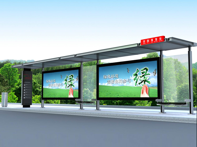 公交車候車亭一般是與公交站牌相配套的,為方便公交乘客候車時遮陽、防雨等,在車站、道路兩旁或綠化帶的港灣式公交?空旧辖ㄔO(shè)的交通設(shè)施。由于城市公交的日益發(fā)達(dá),候車亭已發(fā)展成為城市一個不可或缺的重要組成部分,設(shè)計精美的候車亭也成為了城市一道美麗的風(fēng)景。 一般候車亭棚體主要頂棚、立柱、頂弓、廣告燈箱和坐凳組成,也有用隔板來代替廣告燈箱的。