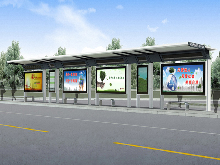 公交車候車亭一般是與公交站牌相配套的,為方便公交乘客候車時遮陽、防雨等,在車站、道路兩旁或綠化帶的港灣式公交停靠站上建設(shè)的交通設(shè)施。由于城市公交的日益發(fā)達(dá),候車亭已發(fā)展成為城市一個不可或缺的重要組成部分,設(shè)計精美的候車亭也成為了城市一道美麗的風(fēng)景。 一般候車亭棚體主要頂棚、立柱、頂弓、廣告燈箱和坐凳組成,也有用隔板來代替廣告燈箱的。