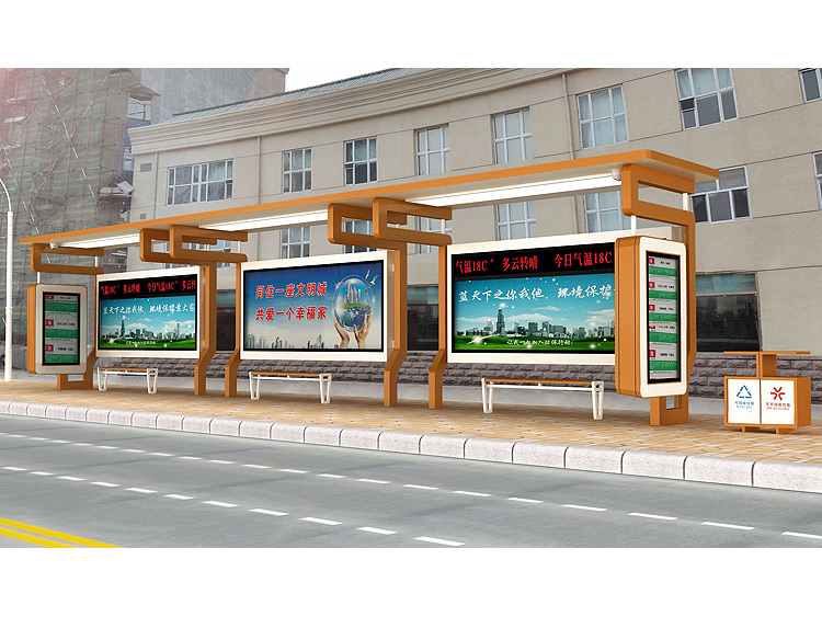 公交車候車亭一般是與公交站牌相配套的,為方便公交乘客候車時遮陽、防雨等,在車站、道路兩旁或綠化帶的港灣式公交?空旧辖ㄔO(shè)的交通設(shè)施。由于城市公交的日益發(fā)達,候車亭已發(fā)展成為城市一個不可或缺的重要組成部分,設(shè)計精美的候車亭也成為了城市一道美麗的風景。 一般候車亭棚體主要頂棚、立柱、頂弓、廣告燈箱和坐凳組成,也有用隔板來代替廣告燈箱的。